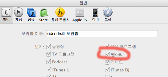 1. iTunes 환경설정에서 [벨소리] 항목 선택